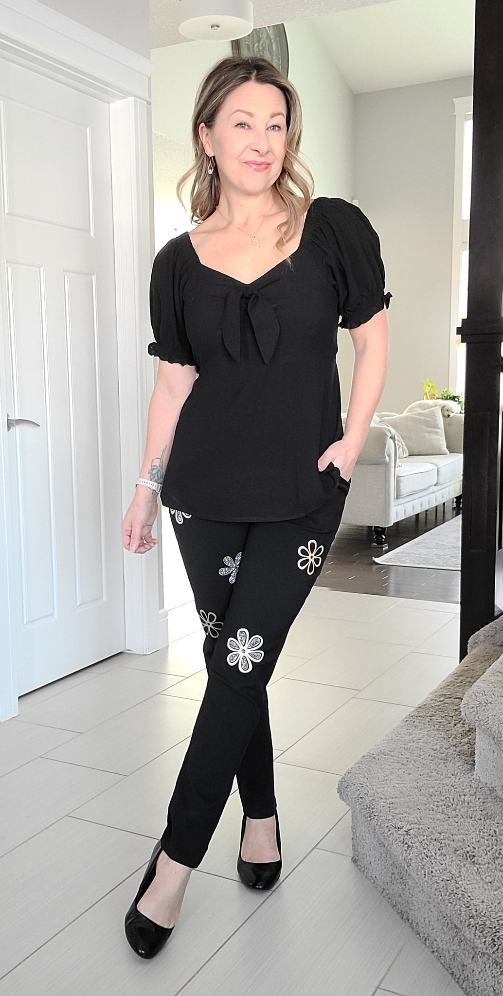 Pair her with jeans. A denim skirt. Our Noir Daisy Joggers. Heels, sneakers or cute flip flops 🌸