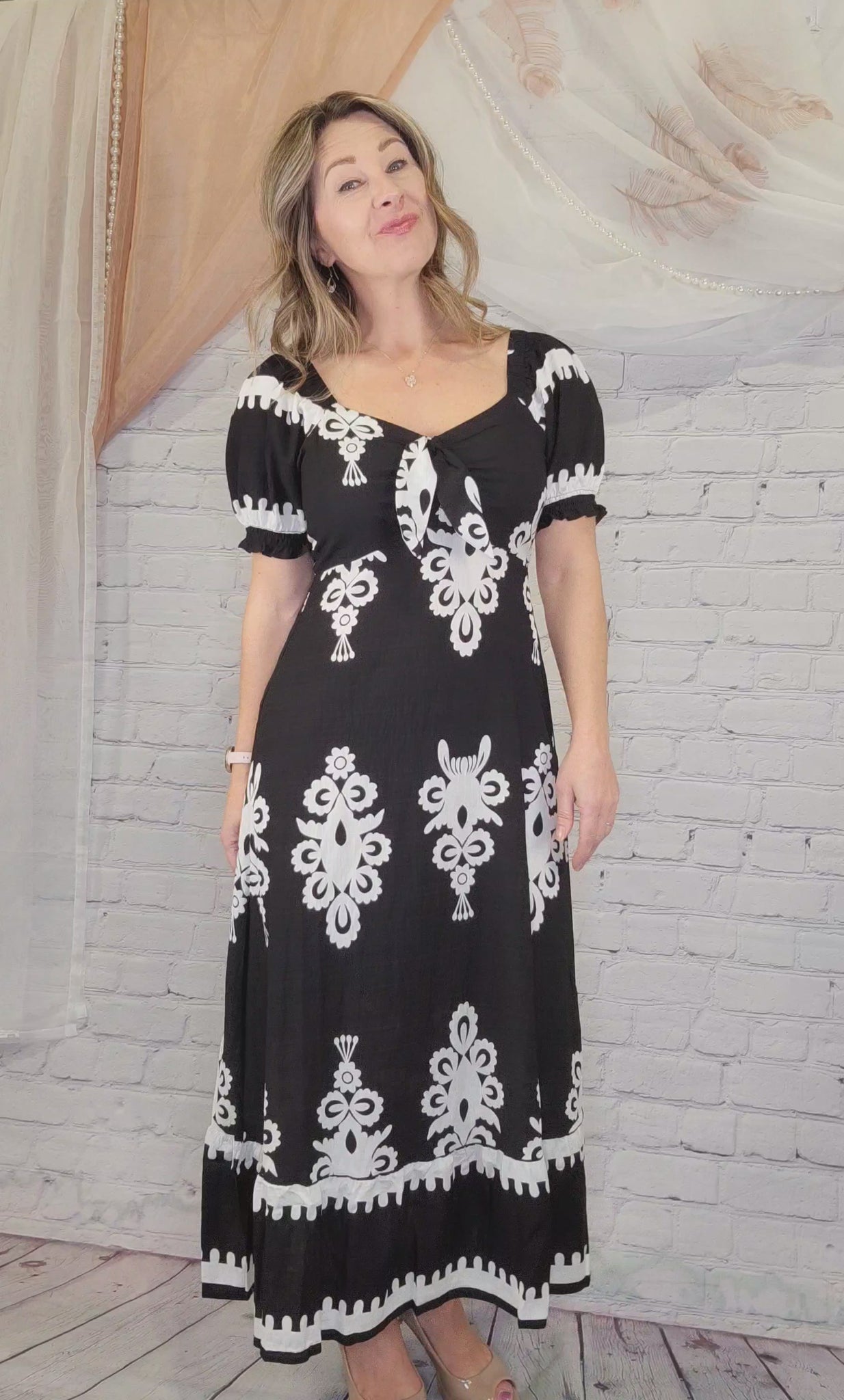 Embody the enchanting allure of the Mediterranean with the La Dolce Vita Dress. Its feminine design features an empire waist and a comfortable smocked, stretchy back, while elasticized shoulders create charming puff sleeves. Thoughtfully designed with pockets, this dress lets you feel carefree and elegant, perfect for sunny days and dreamy adventures.